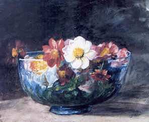 (right: John LaFarge, Bowl of Flowers, watercolor)