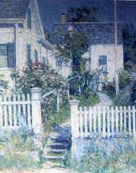 (left: Childe Hassam, White House Gloucester, oil on canvas)