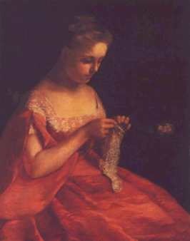 Unlike her Abstract Expressionist contemporaries, Louise Nevelson found the formal means to convey this movement's impulse through the discarded refuse of the city streets. Her findings of lumber, boxes, salvaged architectural features and constructed objects became her palette, freely composed within the matrix of a cubist grid into monochromatic painted wall sculptures, a technique as radical as Pollock's drip and splatter. By combining the frontal read of a painting with sculptural texture and tactility, uniquely embracing the mystery of light and shadow, she created a radical new look. (right: Mary Cassatt, La jeune mariée (The Young Bride), 1868-69, oil on canvas, 34-3/4 x 27-1/2 inches, Montclair Art Museum, Gift of the Max Kade Foundation)