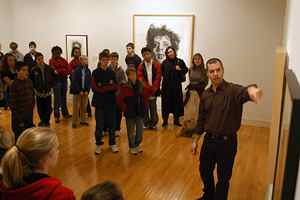 Note: Both photos show Davidson Gallery Director Brad Thomas explaining the exhibition to one of numerous groups of school children who have toured it.