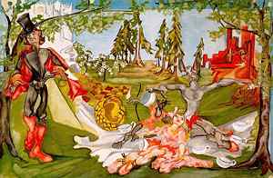 The traveling exhibit, which was organized by International Arts and Artists of Washington, D.C., features a collection of 54 framed watercolors and a portion of paper doll constructions by Zelda Sayre Fitzgerald, the wife of writer F. Scott Fitzgerald. The exhibit will explore Zelda's personality as well. "Zelda By Herself: The Art of Zelda Fitzgerald." will be on display from February 15 through April 11, 2004. (right: A Mad Tea Party, gouache on paper, Undated, Courtesy of Eleanor Lanahan)