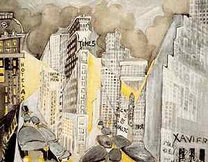 (right: Times Square, gouache on paper, c. 1944, Courtesy