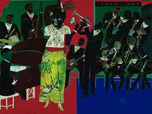 In Romare Bearden's Empress of the Blues (1974),
