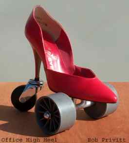 (above: "Office High Heel" refers to the changing role of women as the are charged with reponsibilities both in the home and the workplace, 8.5 x 9.75 x 6.5 inches)