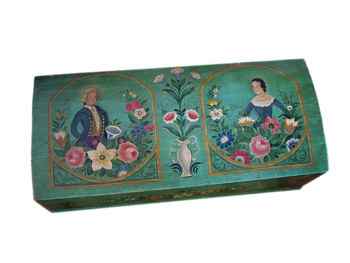 (above: Dome-top chest with portraits and garlands; decorated by Martha Cahoon; oil on wood; 1946; h 15 inches, w 34 inches, d 15 inches; private collection)