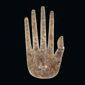 (above: Hand cutout; Ohio, Ross County, Hopewell Site, Mound 25; 1 - 400 A.D.; sheet mica; 11 1/2 inches; Ohio Historical Society, Columbus)