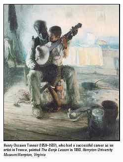 A similar political/apolitical bifurcation is present in the work and lives of artists working between 1865 and 1900. First against a social backdrop of enfranchisement and hope and later against one of disenfranchisement and despair, landscape painters like EDWARD MITCHELL BANNISTER and William Harper created moody, Barbizon School-like scenes, bereft of the political jockeying and white-on-black violence that characterized African American lives at the end of the century. For painter HENRY OSSAWA TANNER the pressures of American racism and the burdens of representing his race were too great. His 1891 move to Paris, France, encouraged his interest in painting mostly biblical scenes in a part academic, part symbolist manner. In contrast, the Athens, Georgia, seamstress Harriet Powers, oblivious to the world of art galleries and exhibitions, created at least two powerful Bible quilts that bore strong similarities to West African textile arts, especially to the cloth appliqués from the AKAN and FON peoples.