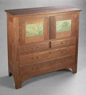Chest with Winter Landscape, ca. 1904, oak with painted panels, Height: