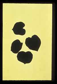 Working on paper rather than on a stone or plate has been attractive to Kelly for a number of reasons. Most importantly, it ties his crayon plant drawings to those he does in pencil and ink. He also feels that the process of direct lithography -- where the artist draws directly on a stone or plate, resulting in a final printed image that is the reverse of the original drawing -- compromises the integrity of the individual shapes and overall balance of the composition. He does not want to achieve a reversal of his drawing gesture but the actual gesture itself.