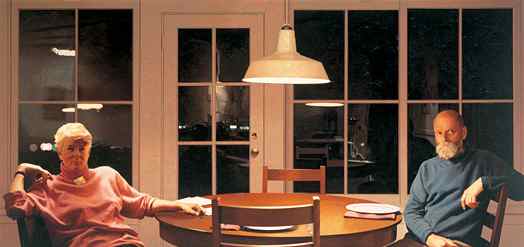 The exhibition concludes with San Francisco residential landscapes, including the dramatic Sunset Intersection-40th and Vicente, 1989; Texas Street Intersection, 2000; and the companion paintings, Mariposa I and Mariposa II, 1999 and 2000, which make use of the artist's hilly Potrero Hill neighborhood; and Jetta, 2003, showing the artist's recent interest in depicting covered cars. Bechtle's recent work is also represented by major interiors -- both self-portraits and double portraits of himself with his wife, art historian Whitney Chadwick, in such pieces as, Broome Street Zenith 1987, and Potrero Table, 1994.