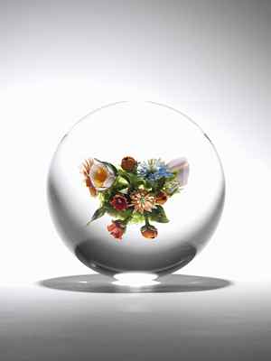 (above: Paul Stankard, Floral Orb with Mask, 2002, Collection of Annie and Mike Belkin)