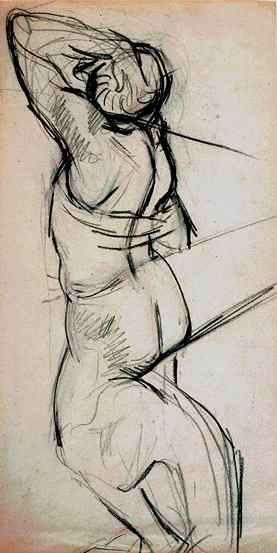 The Montclair Art Museum is the premier repository for the art and papers of leading American modernist Morgan Russell (1886 - 1953). Henry M. Reed, a resident of Caldwell, New Jersey, who served on the Museum's Board and Art Committee from 1985 to 1990, donated this collection in 1985.The Morgan Russell Archives and Collection Enhancement Project, 2004 - 2006, which had never been fully inventoried until now, consists of more than 3,000 works on paper, five oil paintings, over 70 notebooks, thousands of pages of correspondence, and more than 350 photographs of the artist's work and other subjects, as well as many other documents. The collection is a unique record of the complexities of Russell's aesthetic and intellectual adventures, especially his development of the first declared American modern art movement Synchromism (meaning "with color") from 1912-14. (right: Morgan Russell, Study after Michelangelo's "Dying Slave," ca. 1910-1912, pencil on paper, 12-1/4 x 8-1/8 inches. Gift of Mr. and Mrs. Henry Reed. 1985.172.35)