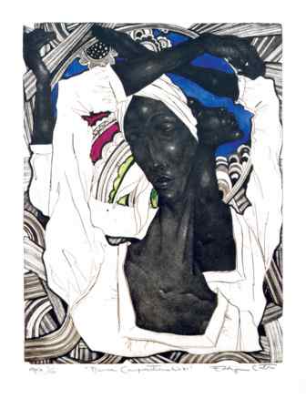 color intaglio on paper. Courtesy of Kenkeleba Gallery. © Eldzier Cortor)