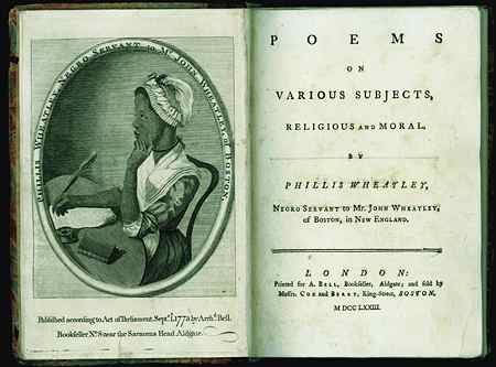 (above: Scipio Moorhead (lived in Boston, Massachusetts, 1750), Phillis Wheatley, Negro Servant to Mr. John Wheatley of Boston, 1773. Frontispiece engraving. © Special Collections, Margaret Clapp Library, Wellesley College)