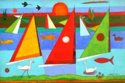 art classes. (right: Fred Winslow Noyes Jr., Sailboats, acrylic