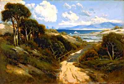(above: Manuel Valencia (1856-1935, Seventeen Mile Ride, Monterey, oil on canvas. Private Collection, courtesy of DeRu's Fine Arts