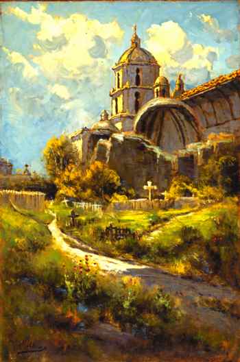 (above: Manuel Valencia (1856-1935, The Cemetery, Mission San Luis Rey, oil on canvas. courtesy of DeRu's Fine Arts)