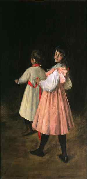 Reflecting the collectors' taste, several themes emerge in Sargent, Chase, Cassatt. Sargent's Study for Carnation, Lily, Lily, Rose (1885-6) and Thomas Wilmer Dewing's Lady in Lavender (c. 1919-23), the first painting the couple purchased, reveal their shared interest in ethereal and enigmatic images. Portraits of intelligent and engaged women also figure prominently, and many of the artists -- Sargent, Chase, Dewing, Hassam, Prendergast, and Paxton -- have close ties to Boston. John Singer Sargent's masterpiece, The Daughters of Edward Darley Boit (1882), on view in the Americans in Paris exhibition, deeply touched one of the collectors when she was a college student and had her first opportunities to experience works of art at the MFA, where she frequently visited the galleries displaying paintings by Sargent and the French Impressionists.