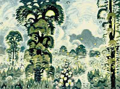 (above: Charles E. Burchfield (1893-1967), Fireflies and Lightning, (1964)-1965, Watercolor, graphite and white conté crayon with masking tape on paper. Collection of the Burchfield-Penney Art Center. Purchase made possible with funds from M&T Bank, the Margaret L. Wendt Foundation, the Vogt Family Foundation, William and Laurie Brosnahan, an anonymous foundation, and an anonymous donor, 1998)