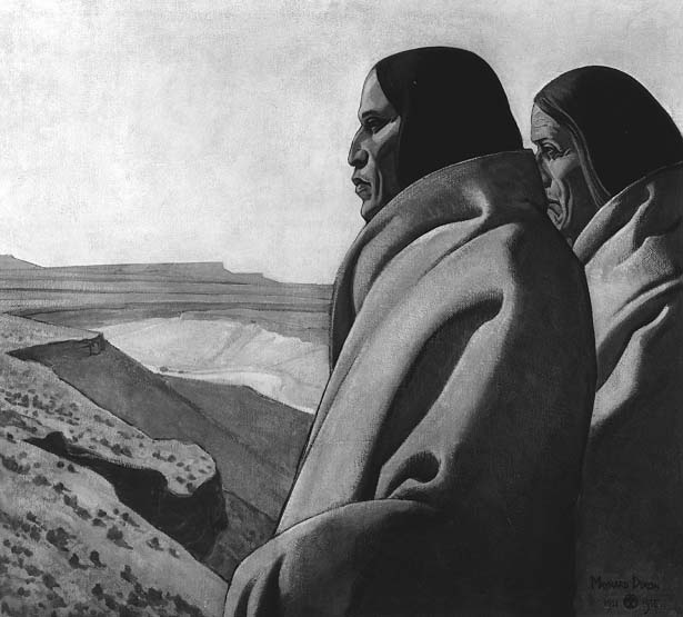 Left: Maynard Dixon, Men of the Red Earth, oil on canvas, 36 x 41 inches, gift of Class of Summer, 1944, courtesy of the LAUSD Collection