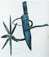 (right: James Surls, Knife, Flower and Snake, 1997, bronze,