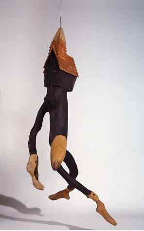 A native of East Texas (he was born in Terrell in 1943) Surls graduated from Sam Houston State College in Huntsville before achieving his Masters of Fine Arts at Cranbook Academy in Bloomfield Hills, Michigan. In 1969 he returned to Texas to teach sculpture at Southern Methodist University in Dallas, before coming to Houston in 1976 to teach sculpture at the University of Houston. In 1979 he was the driving force for the establishment of the Lawndale Annex, a thriving and vibrant alternative space that grew organically from a warehouse for student studios on the University campus into the Lawndale Art and Performance Center, largely through his entrepreneurial spirit. After leaving Lawndale and his teaching position at UH in 1982, Surls devoted himself full time to his studio practice and artistic vision for the growing compound in Splendora. Since 1998 he and his family have lived in Colorado. (right: Night Vision, 1980, pine, oak, sweet gum root, 91 x 48 x 42 inchess (231.1 x 121.9 x 106.7 cm). Collection L.A. Louver Gallery, Venice, California)