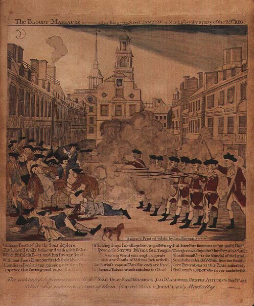 Images from top to bottom: Jean-Antoine Houdon (1741-1828) Life Mask of George Wasshington, plaster, taken at Mt. Vernon, October 1785, 12 1/2 inches high, The Pierpont Morgan Library, Purchased by Pierpont Morgan © The Pierpont Morgan Library; Two stars from General Washingon's uniform, with locks of hair of George and Martha Washington, The Pierpont Morgan Library, Gift of Louisa Lee Schuyler and Georgina Schuyler, 1924, MA 6029 © The Pierpont Morgan Library; Paul Revere (1735-1818) The Bloody Massacre perpetrated in...Boston on March 5, 1770, Boston, 1770, Gilder Lehrman Collection, on deposit at The Pierpont Morgan Library, GLC 1868 Photo © The Pierpont Morgan Library; François X. Habermann (1721-1796) Representation du Feu terrible a Nouvelle Yorck... 19 September 1776, Augsburg, c. 1778, The Huntington Library, HL 88539 © The Huntington Library