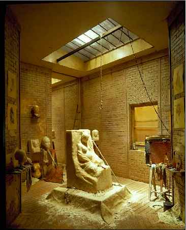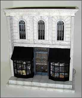 Other lenders in this region include Eileen Godfrey, of Pound Ridge, NY, whose living room with a safari theme was painted by Therese Bahl. Eileen's son Craig Scolaro made a 3-story bakery. And Ketsia Melendez of Brooklyn, NY, has created a delicious chocolate shop and a jewelry boutique. Dr. DuRee Eaton of New Rochelle, NY, has lent her marvelous rendition of Monet's dining room at Giverny. Giving great attention to detail, Duree took two trips to Giverny and spent seven years to bring the copy -- with its custom-made tiny yellow chairs, cabinets of blue china, blue-and-white tiles, Japanese fan flower holder, and even an authentic centerpiece of mimosa-- to completion.