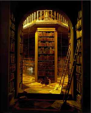 One of the exhibition favorites will be Sylvia Rountree's "Cobbler Emporium" filled with dozens of tiny shoes. Sylvia of Berlin, MD, makes every pair of shoes herself, from children's Mary Jane's to satin and rhinestone slippers. (right: Charles Matton, Library: Homage to James Joyce, 2004, mixed media box construction)