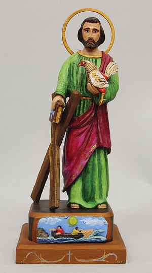 The oldest Santos in Puerto Rico date to the late eighteenth century, although the surviving majority date from the late nineteenth century to the present. This tradition of religious carving originated in the rural areas of Puerto Rico where the figures served as portable, home based altarpieces in an area where churches were scarce and poor roads made it difficult to travel. Believers pray to the Santo, which is imbued with the saint's spirit, to intercede with God on their behalf.