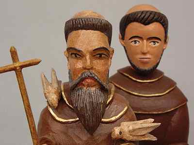 Santo, a Spanish word meaning "saint" refers to an image of a holy figure in Catholic traditions. In the sixteenth century, Spanish Catholic missionaries in Puerto Rico introduced prayer and devotion to saints to the native Tainos and Africans, brought to the island as slaves. Spanish colonists also brought their tradition of carving saints to Puerto Rico as well as to New Mexico, the West Indies, Mexico, Central and South America, and the Philippines. Self-taught wood carvers known as santeros created small portable figures of saints and holy subjects
