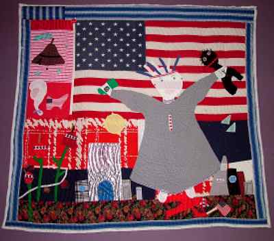 (above: Yvonne Wells, "Being in Total Control of Herself," 1990; inspired by the quilter's first trip to New York City)