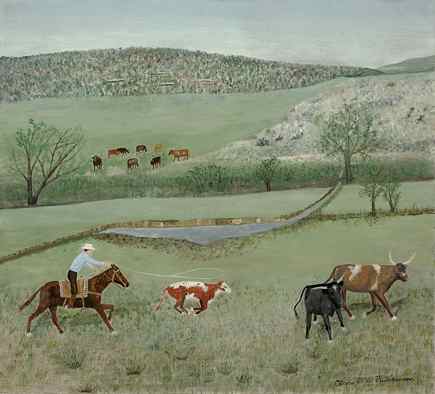 (above: Clara McDonald Williamson, American, 1875 - 1976, Ropin' the Range, 1957, Oil on panel, Image dimensions: 18 x 20 inches (45.72 x 50.8 cm), Framed dimensions: 25 1/2 x 27 1/2 inches (64.77 x 69.85 cm). Dallas Museum of Art, The Barrett Collection, Dallas, Texas)