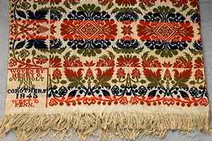 (above: Coverlet, 1845, Inscribed: Henry O. Overholt for Jane Corothers, Wool and cotton tied Beiderwand, 78 x 76 inches. Collection: Harley N. Trice. Photography: Mark May Photography