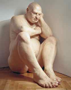 (above: Ron Mueck, Big Man, 2000, Mixed media, 81 x 46 14 x 82 34 inches. Hirshhorn Museum and Sculpture Garden, Washington D.C.)