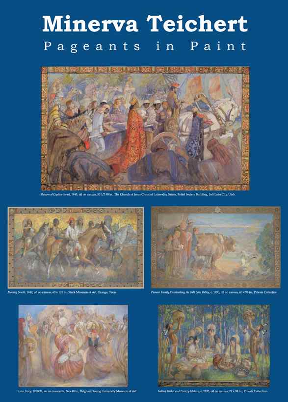 "Minerva Teichert: Pageants in Paint," a new exhibition at the Brigham Young University Museum of Art presented by Zions Bank, will examine how the American mural and pageantry movements influenced Teichert's artistic production through 47 of her large-scale narrative murals. Some of the works in the exhibition come from private collections and have not been seen publicly for many years. The exhibition, which will be on view from Friday, July 27, 2007 through Monday, May 26, 2008, also will explore how Teichert's personal dramatic flair contributed to the theatrical characteristics of her murals of religious and western subjects.