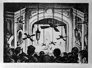 (above: Jerry Bywaters (1906-1989), Opera at Popular Prices, 1936, Transfer lithograph. Edition number: 6/30. Jerry Bywaters Collection of Art of the Southwest, Hamon Arts Library at SMU, JB.86.18)