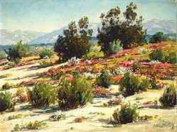 In keeping with the Irvine Museum's annual tradition, the Spring 2008 show highlights the outstanding display of wildflowers that once characterized Spring in California. Bygone vistas of gentle rolling hills, covered with brilliant wildflowers, adorn the walls of the museum along with magnificent gardens and charming still life's of beautiful bouquets.