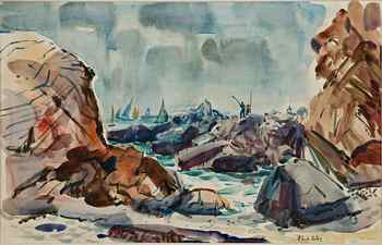 (above: Phil Dike, Newport Jetty, 1950, Watercolor on paper, 14 x 22 inches. Private Collection)