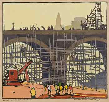 (above: Millard Sheets, 7th Street Bridge Construction, 1927, Watercolor on paper. Frame: 18 x 19 inches. Collection of Ken Davis and Luis Morente)