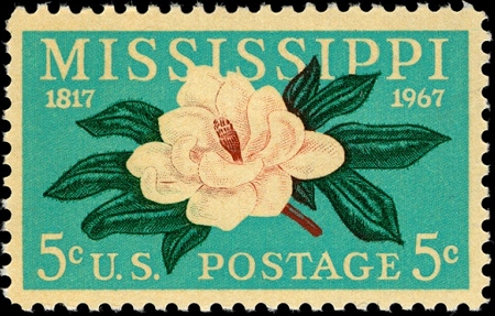 (above: Andrew Bucci, Mississippi Satehood's 150th Anniversary Postage Stamp, 1967, Bureau of Printing and Engraving - U.S. Post Office. Public domain, via Wikimedia Commons*)