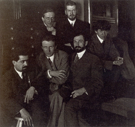 (above: Unknown photographer, A Group of Young American Artists of the Modern School (from left to right: Jo Davidson, Edward Steichen, Arthur B. Carles, John Marin; back: Marsden Hartley, Laurence Fellows), c. 1911, Bates College Museum of Art. Public domain, via Wikimedia Commons*)