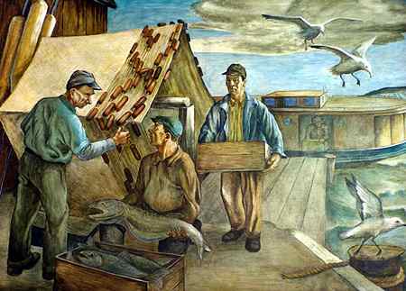 (above: Santos Zingale, Fruits of Sturgeon Bay (detail), Sturgeon Bay WI Post Office, 1940, egg tempera. Section of Fine Arts, Treasury Department. courtesy of USPS & wpamurals.com)