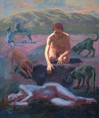 (above: Shauna Cook Clinger, Dog Day: Soul Retrieval, oil on linen, 70" x 60" ©Shauna Cook Clinger