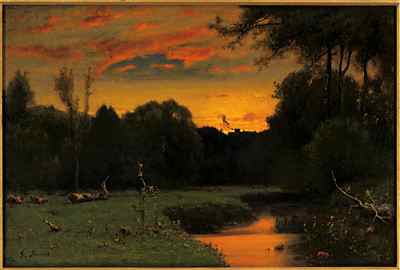 (above: George Inness, Sunset, ca. 1878-1879, Oil on canvas, 10 x 15 inches. The Grey Collection, Brookville, New York)