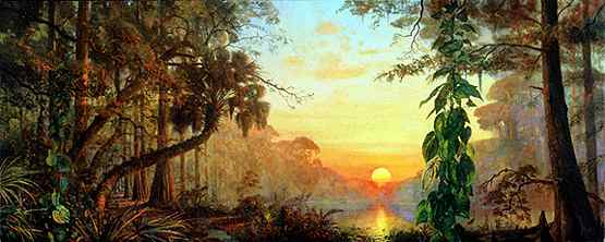 Today, Still is best known for his fascinating and artful representations of Florida life, history and culture. His works are carefully researched and meticulously produced, and feature the technical and compositional influences of his formal training and European studies blended with a modern approach. To achieve the accuracy and detail he requires for his work, Still has traipsed into the Florida wilderness to paint live alligators and other wildlife, used a specialized painting box to paint color studies underwater, interviewed scholars and descendants of historical figures, and researched countless aspects of Florida history, from the sponging industry, pioneer life and the Seminole Wars to the Space Shuttle program. (left: Christopher Still, The Passing of One Day)