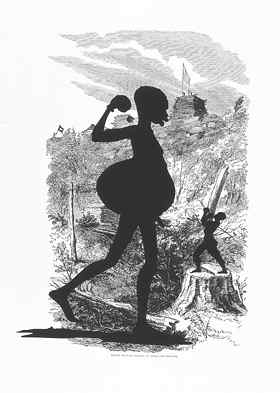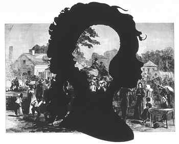 Walker's suite appropriates 15 woodcut illustrations from Harper's Weekly, the nineteenth-century magazine that covered the progress of the Civil War for a mass circulation. Upon the much enlarged originals, which have been reproduced through offset lithography, Walker has superimposed the signature black silhouettes that are the wellspring and trademark of her original style. Such figures are best known in the room-scale, over-life-size installations that comprised her recent retrospective exhibition "Kara Walker: My Complement, My Enemy, My Oppressor, My Love." The exhibition, organized by the Walker Art Center, Minneapolis, traveled to the Whitney Museum in New York and the Hammer Museum in Los Angeles. Walker's "annotations" bring the unmistakable stamp of the artist's presence to bear upon the record of this conflict. As such, they demonstrate what she has referred to as the "landscapes that exist in the back" of her "more austere wall pieces."