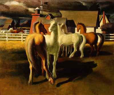 (above: Phil Paradise (1905-1997), The Corral, c. 1941, 23x28 inches, Oil on canvas. Courtesy of The Irvine Museum)