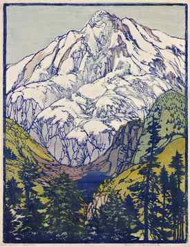 (above: Frances Gearhart, Glacial Majesty (In Glacial Majesty), Color Block Print, 1935, 14 1/2 x 11 inches, Private Collection, Courtesy of JMW Gallery)