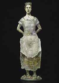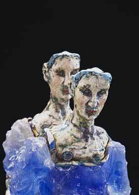 Combining the crackled surface of raku ceramic with the transparency of cold-mold glass, Judy Hill's figurines inhabit the space with an unexpectedly charged psychological presence. The frozen stare, stance and gestures of Hill's figures convey feelings of vulnerability, contemplation and worry, while the fragmented bodies and surface texture of her forms bestow upon the sculptures an ancient, artifact-like quality. Through the translucence of the glass, Hill reinforces the figures' fragility, while through exploitation of the medium's inherent lightness she draws the viewer into the inner life of the figure, revealing the self within. As intensely personal self-portraits, Hill's figures become engaging psychological studies in which unspecified narratives of expectation, anticipation, and dilemma unfold.